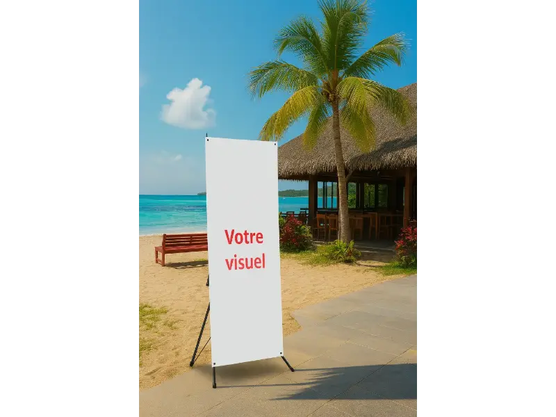 Simple, léger et ultra-efficace, le kakemono en X est l'outil parfait pour attirer l'attention lors de vos salons, conférences ou points de vente. Sa structure en croix garantit une excellente stabilité tout en restant facile à monter et démonter. Grâce à l'impression personnalisée de votre visuel, il vous permet de communiquer avec impact et professionnalisme.