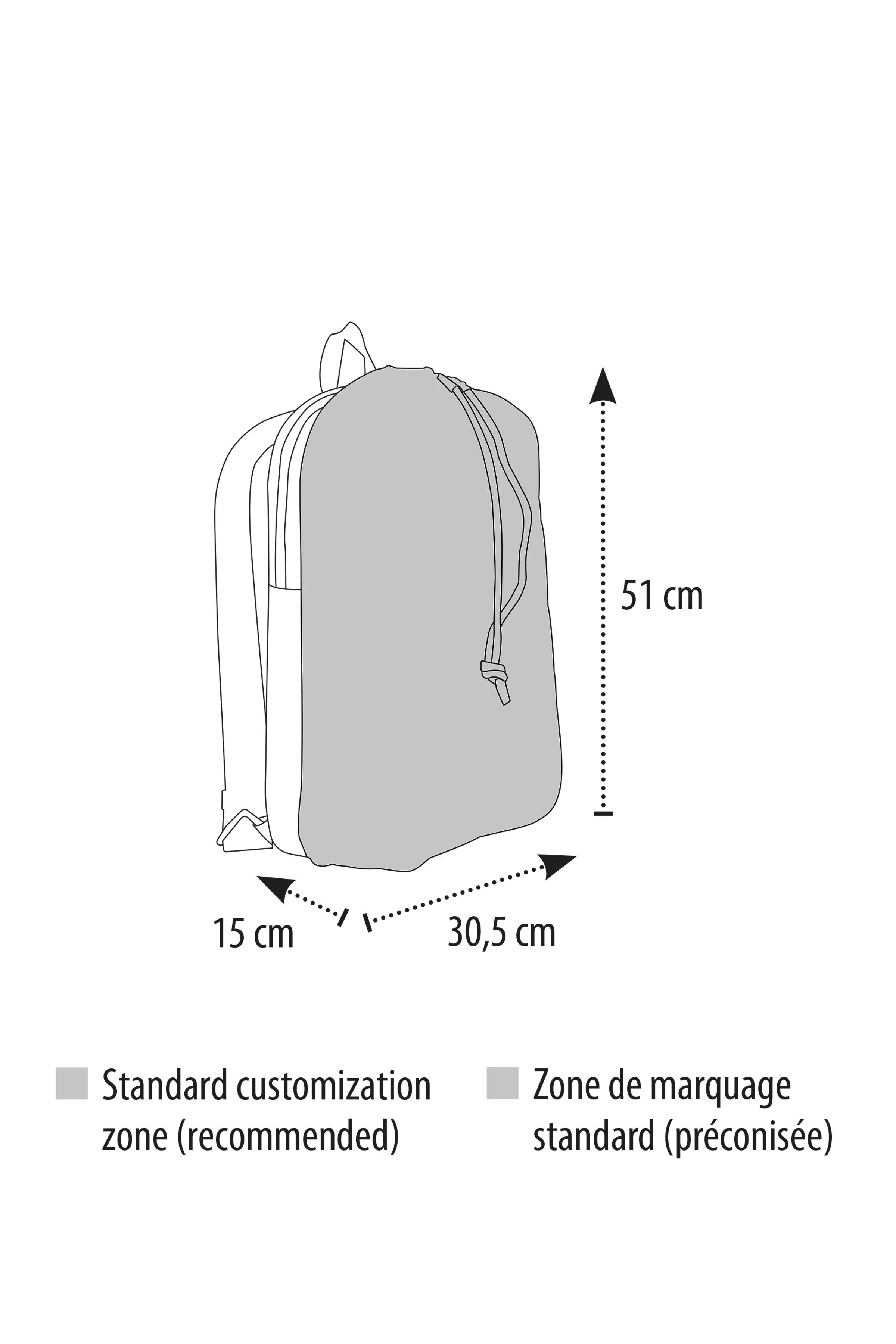 StyleCompartiment principal zippé avec double poche intérieureCompartiment devant fermé par cordonBretelles réglables en cotonDos renfort matelassé